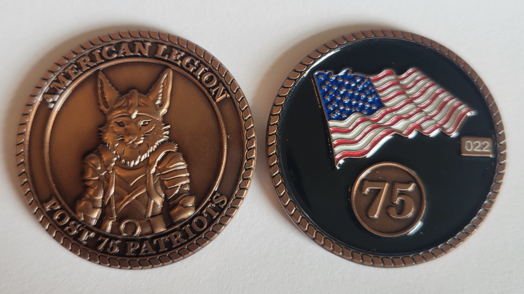 You can support Post 75 by donating $35 annually and becoming a member of the “Post 75 Patriots”. You will be invited to participate in many volunteer opportunities and receive an exclusive numbered challenge coin.